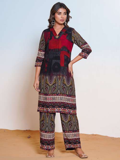 - » women printed three quarter sleeve kurta pant set