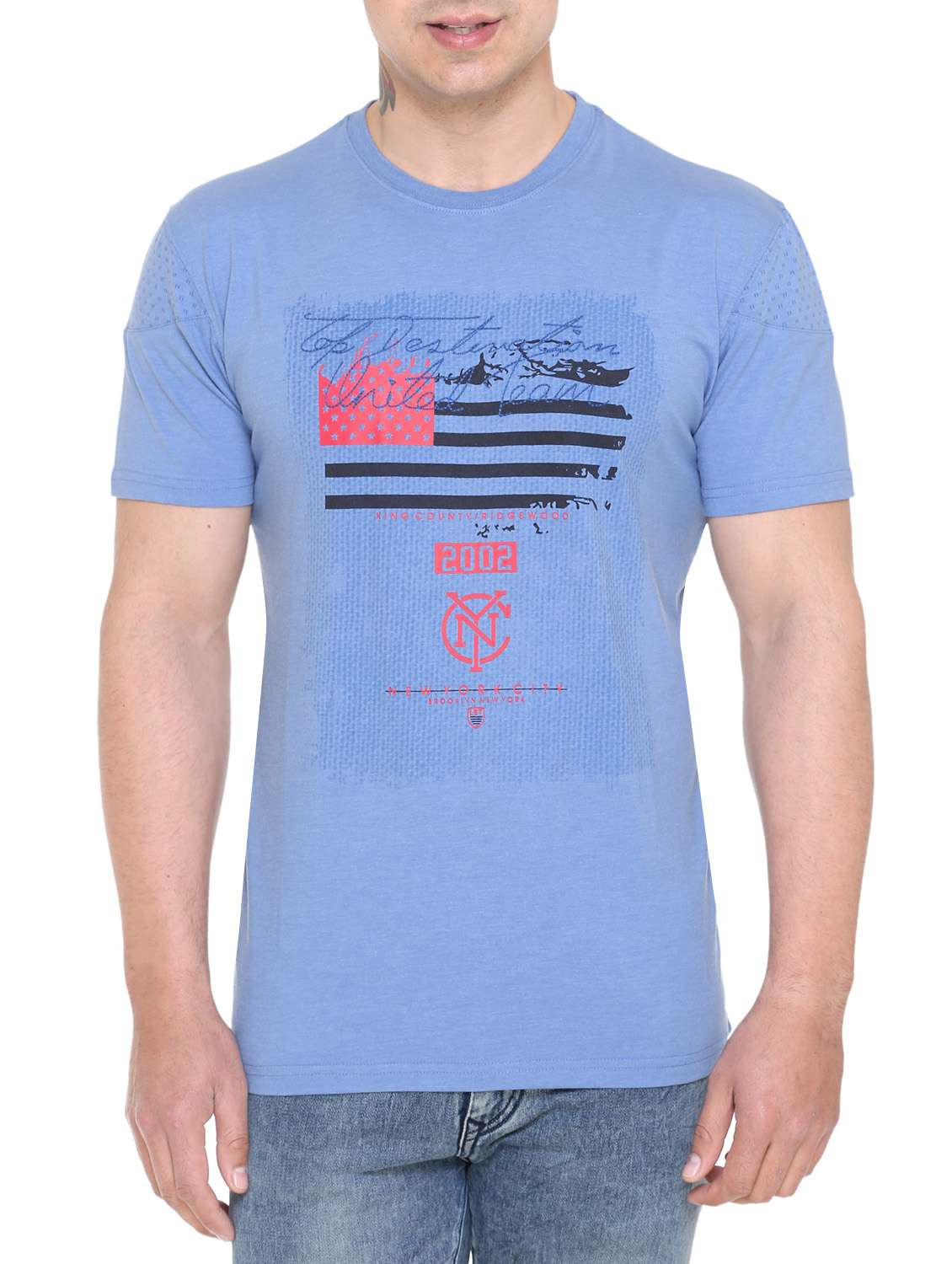 blue cotton chest print t-shirt
