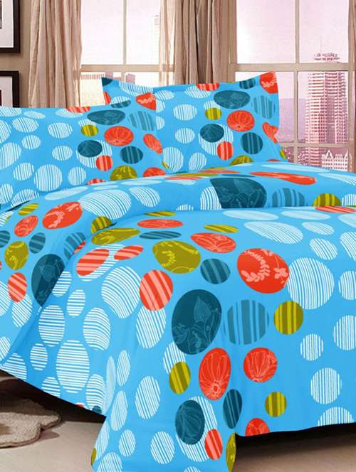 - » valtellina geometrical blue cotton double bed sheet with 2 pillow cover - tc-250
