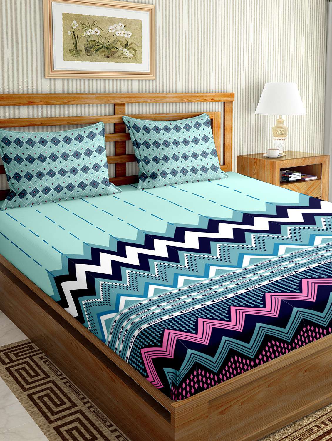 oscar collection double bedsheet set super king size cotton blue colour
