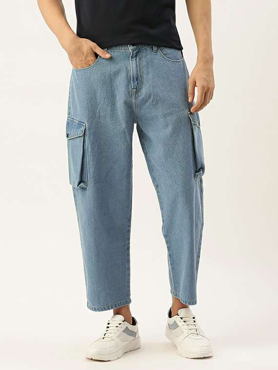 blue solid mid rise ankle length cargo