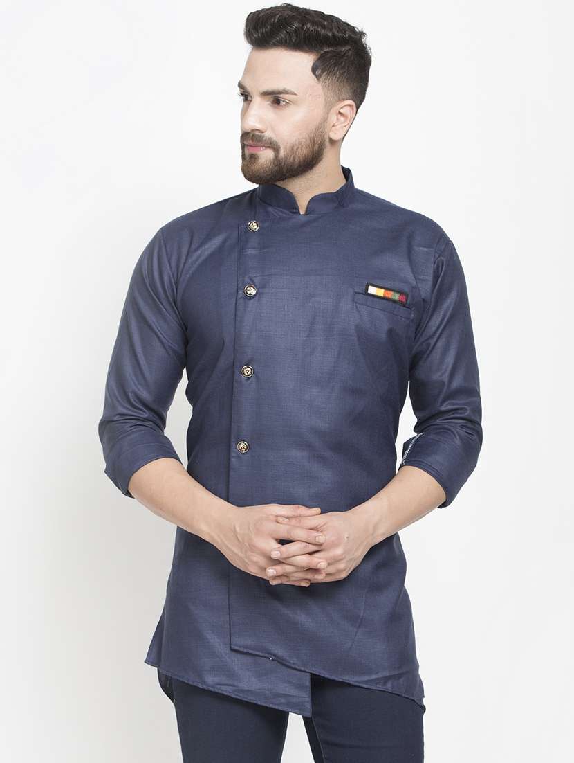 - » blue solid asymmetric short kurta