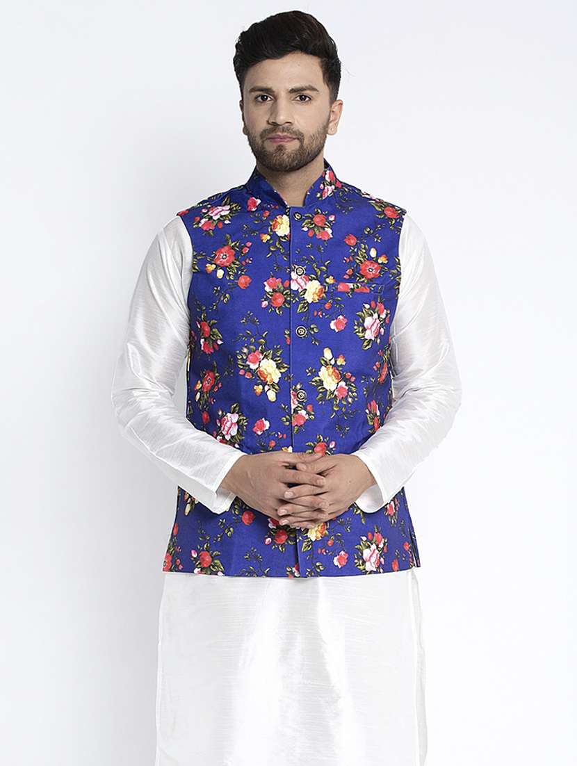 - » navy-blue printed nehru jacket