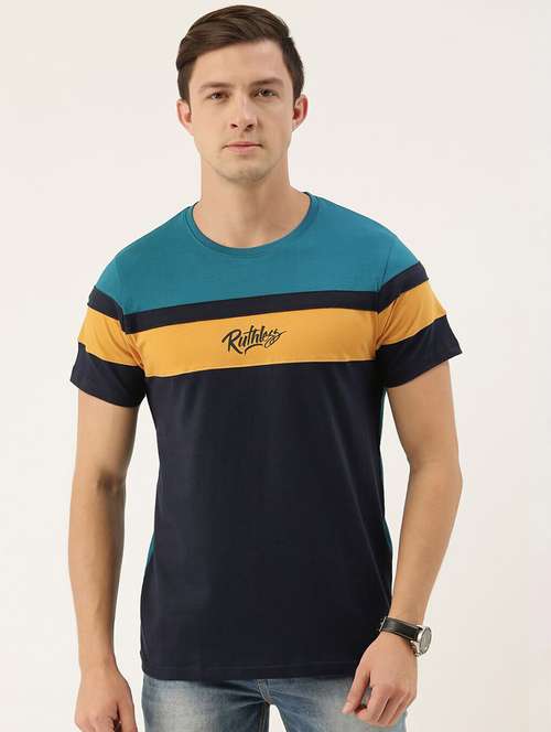 - » blue cotton color block t-shirt