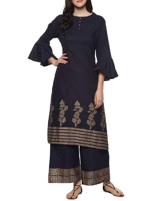 - » blue cotton kurta with blue palazzo set