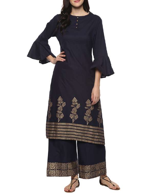 blue cotton kurta with blue palazzo set