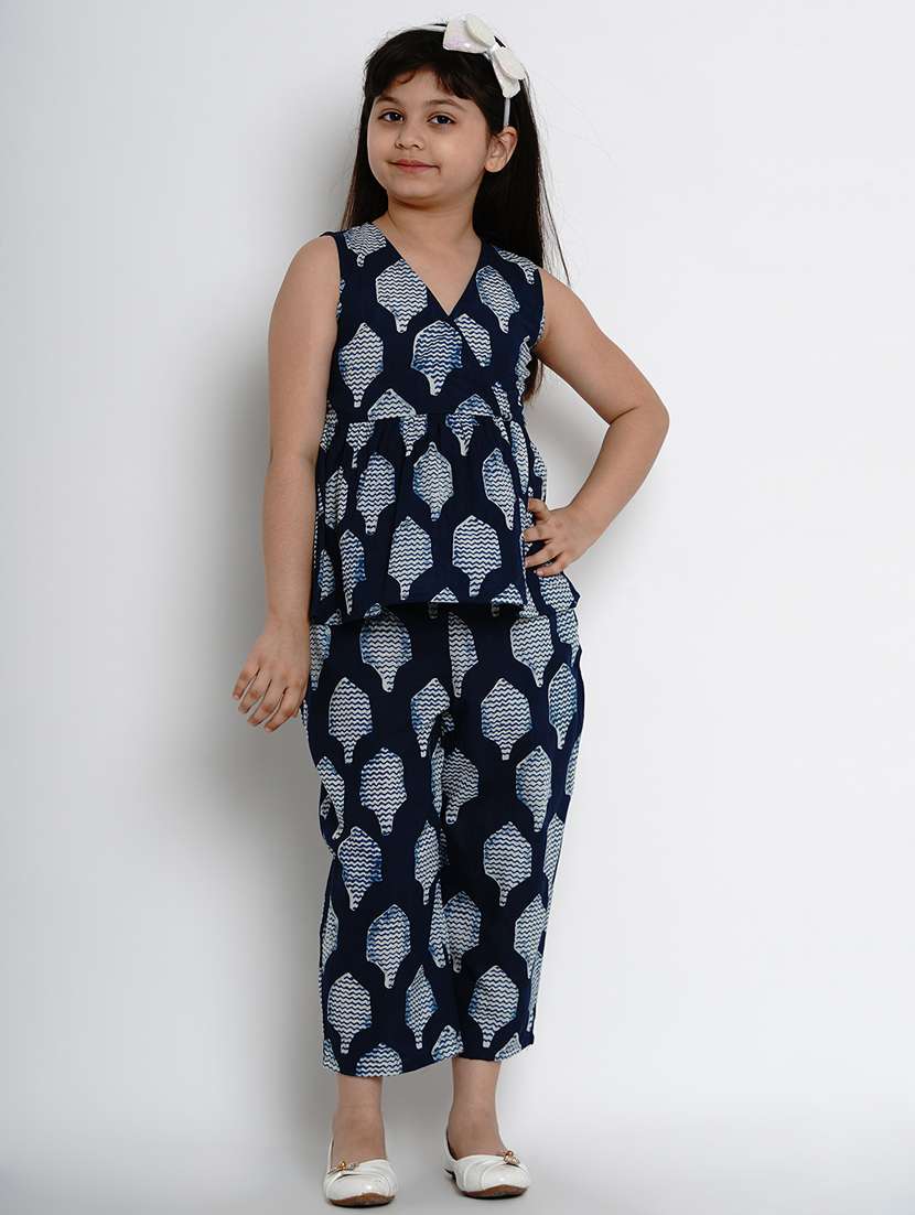 Indigo Print Stylised Short Length Pant ,Along With Sleeveless Top,Front Open