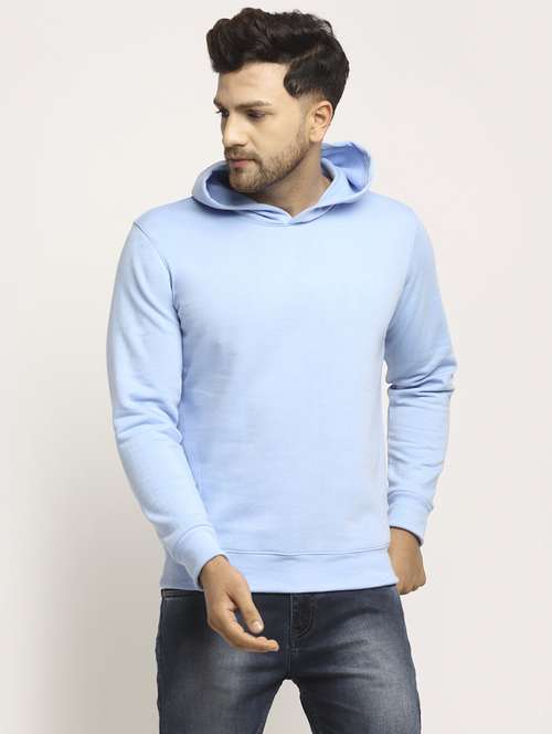 men solid long sleeve regular fit hooded sweatshirt