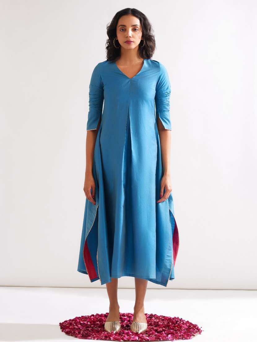 - » women light blue solids a-line dress