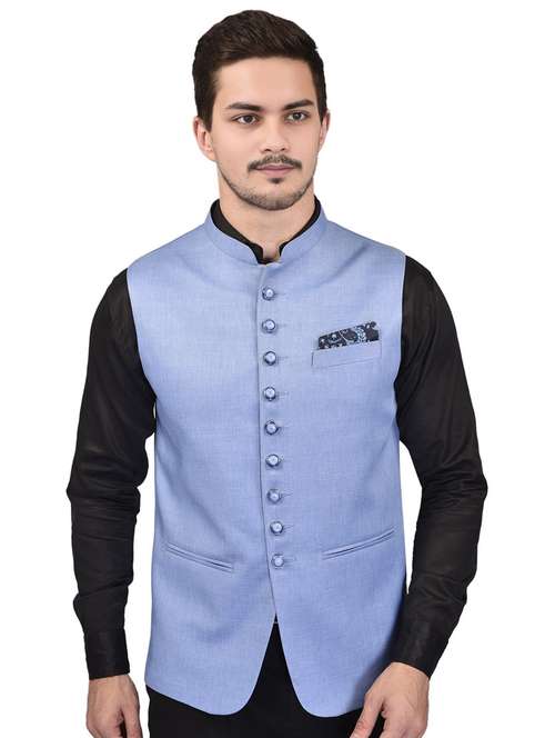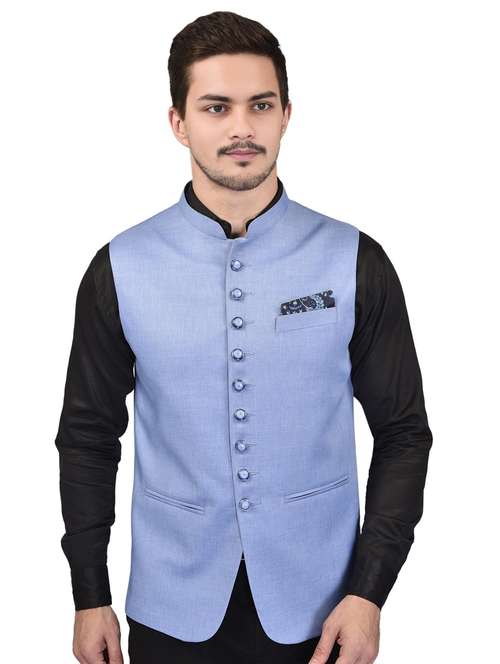 - Look stylish and confident in Auraloom brands with blue Nehru jackets in which you will feel your best.