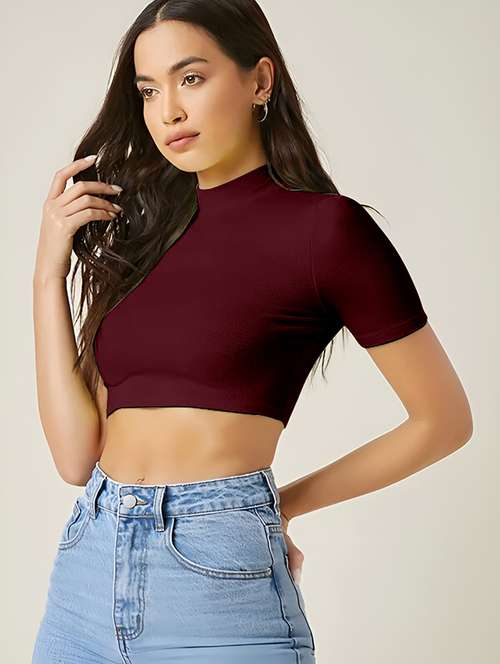 - Opt for this top made up of cotton blend material and get it in a varied neck design.