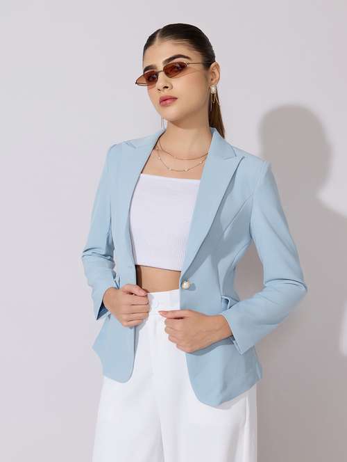 - Be stylish and confident in SHOWOFFFF branded collection of light blue blazers to help you look and feel your best and stay warm as well.