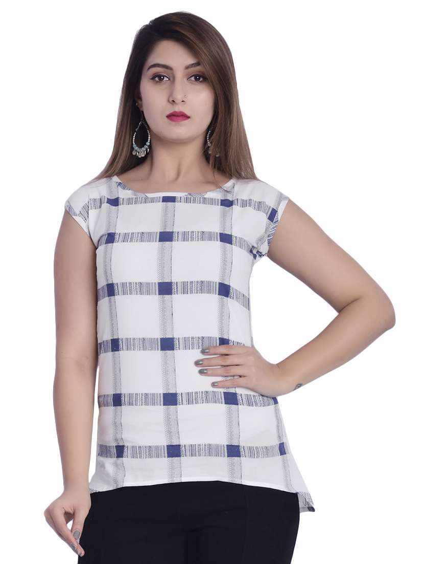 - » round neck check printed top