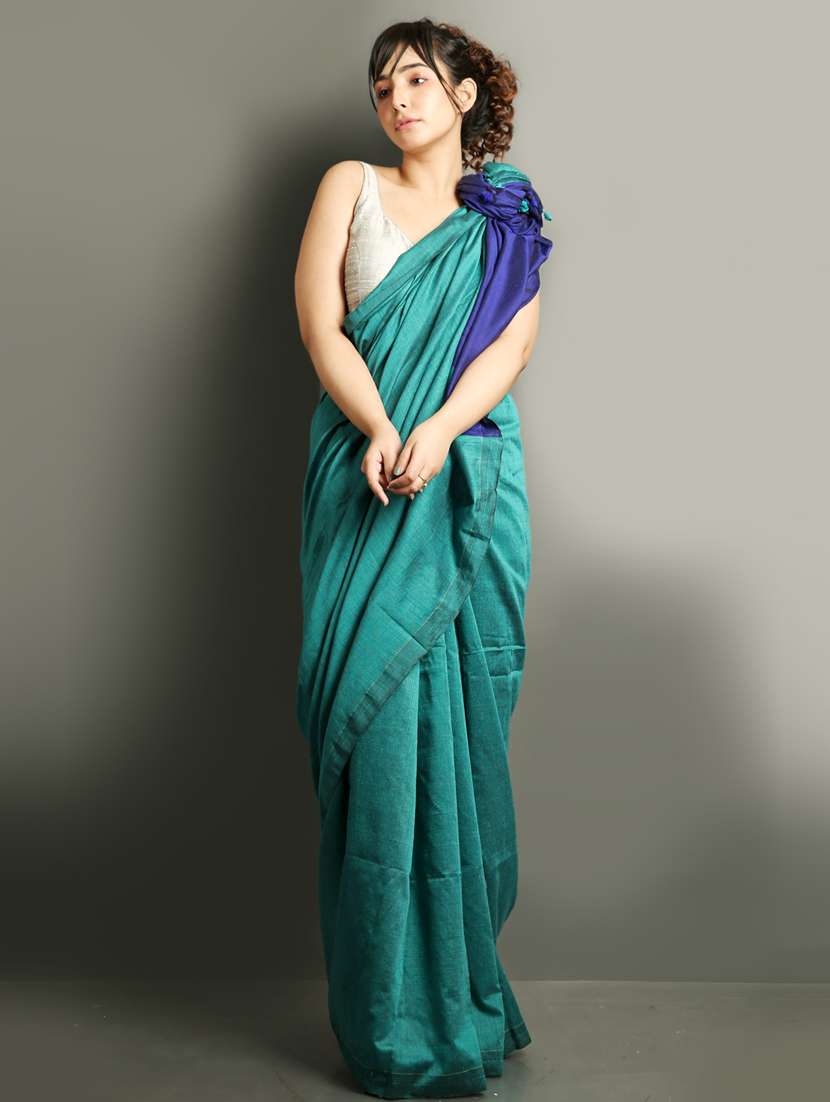 women's self design turquoise colored saree with blouse