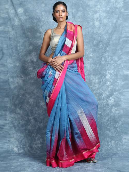 - » women's ikat light blue colored saree