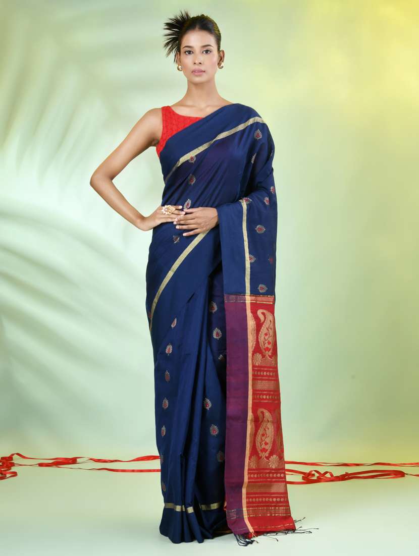 - » women blue handloom saree with blouse