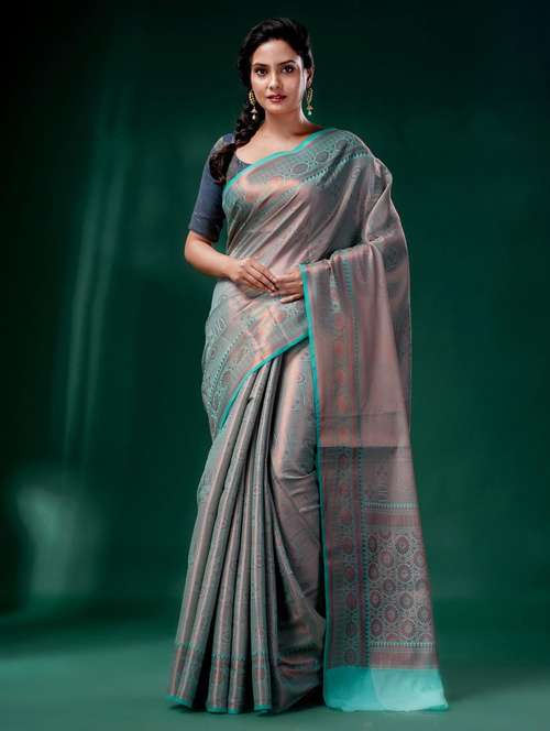 Look glamorous and alluring in this red matka silk handwoven saree. It has plain all over with zari and the borders have geometric patterns.