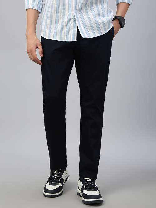 men solid mid rise flat front casual chinos