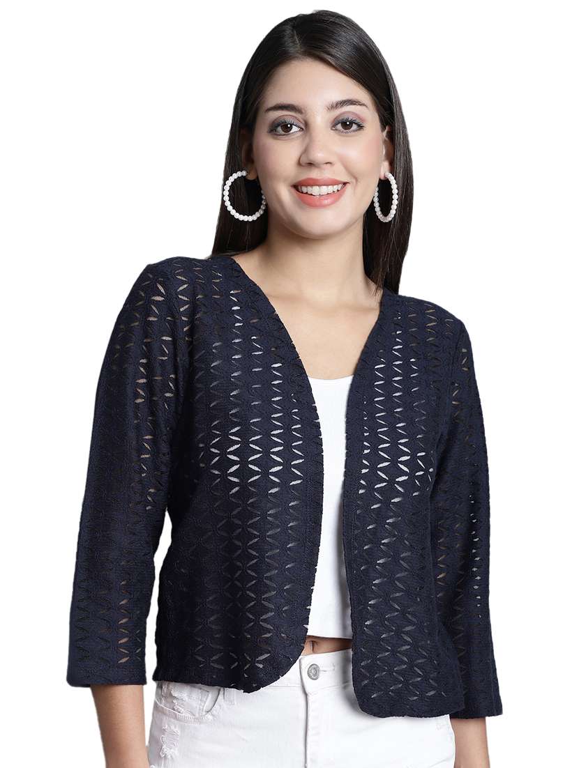 - » women dark blue crochet shrug