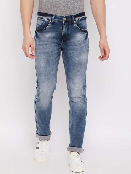 blue navy-blue distressed denim jean