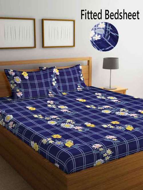 - » fabinaliv blue floral 210 tc cotton blend king size fitted double bedsheet with 2 pillow covers