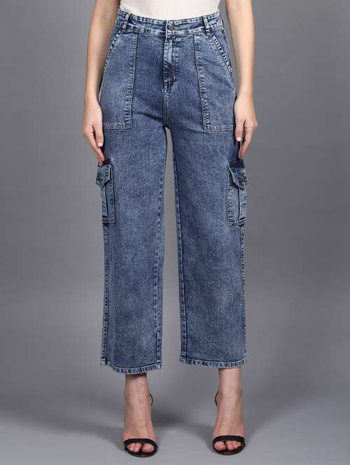 - » solid light blue detailed cargo pant