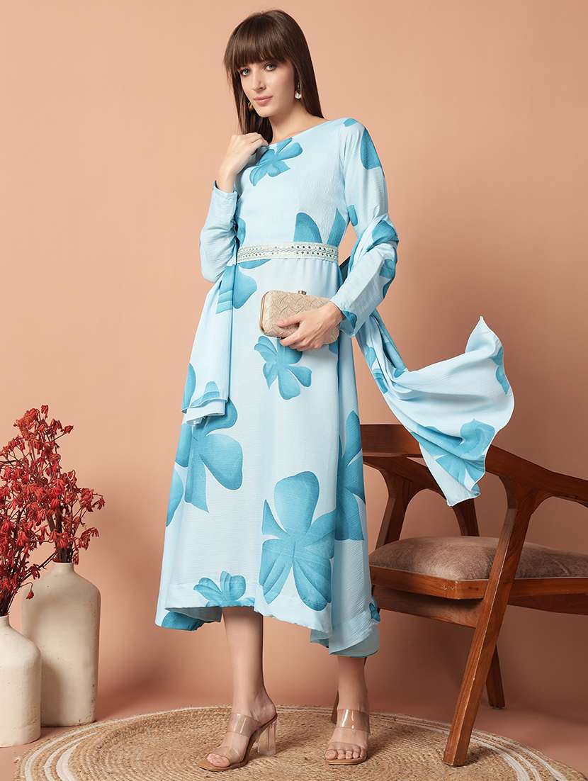 - Find gorgeous sets of ethnic wears in trending designs in light blue colors suitable for festive wear of occasions.