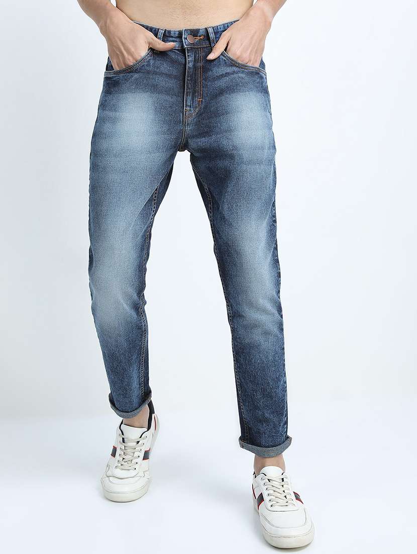 men solid mid rise slim fit jean
