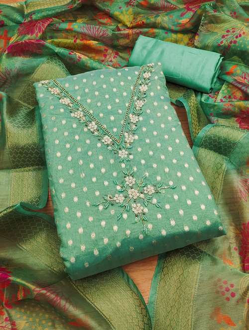- Look ultra gorgeous in unstitched suits from Leeli Peeri Designer and grab these beautiful suits in sea green colour.
