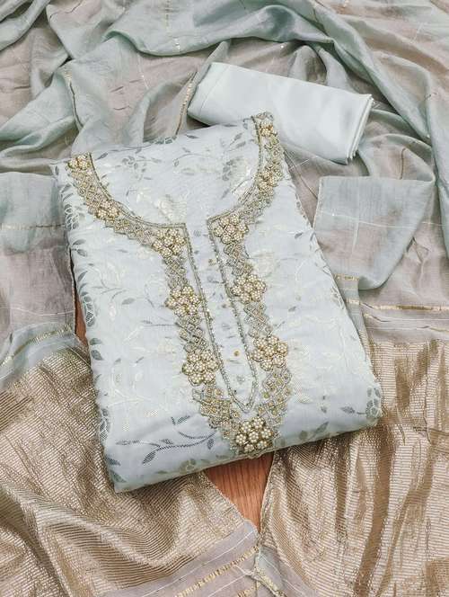 women self design embroidered unstitched suit set