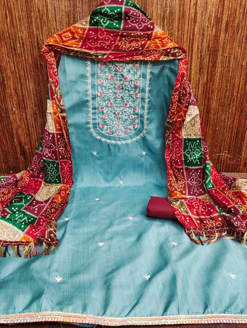 - Look ultra gorgeous in unstitched suits from Leeli Peeri Designer and grab these beautiful suits in blue colour.