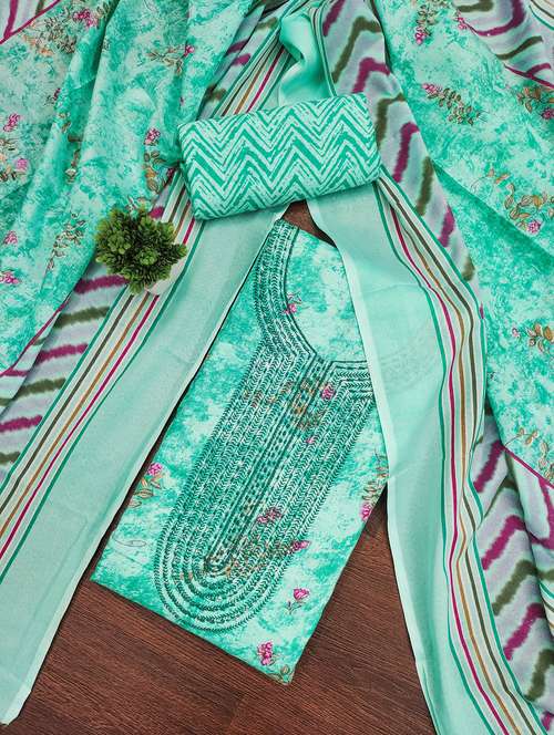 - Look ultra gorgeous in unstitched suits from Leeli Peeri Designer and grab these beautiful suits in sea green colour.