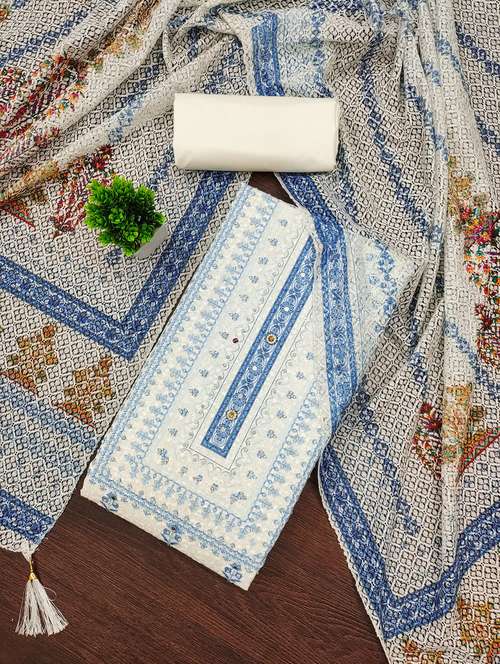 - Look ultra gorgeous in unstitched suits from Leeli Peeri Designer and grab these beautiful suits in white colour.