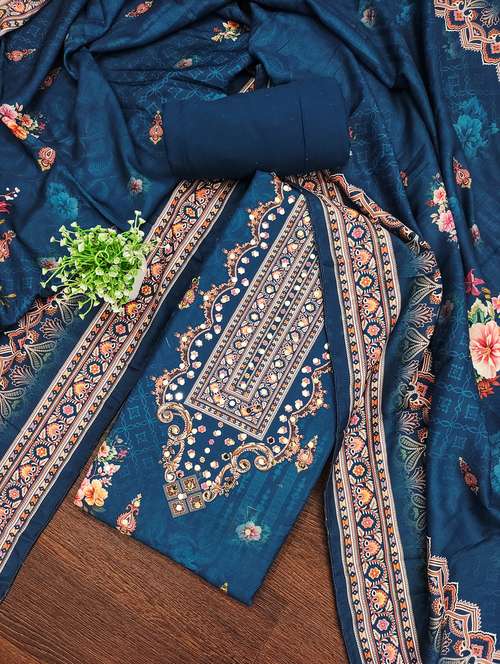 • Look ultra gorgeous in unstitched suits from Leeli Peeri Designer and grab these beautiful suits in blue colour.