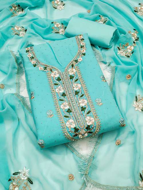 - Look ultra gorgeous in unstitched suits from Leeli Peeri Designer and grab these beautiful suits in blue colour.