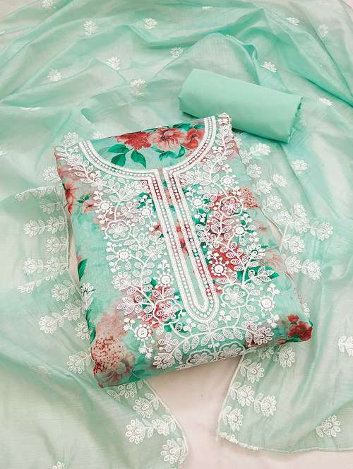 - Look ultra gorgeous in unstitched suits from Leeli Peeri Designer and grab these beautiful suits in sea green colour.