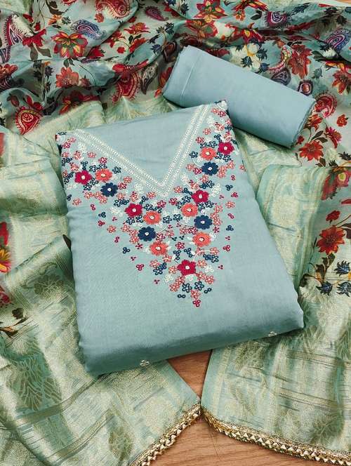 women solid with work embroidered unstitched suit set - 22020755 - Very Small Image - 1