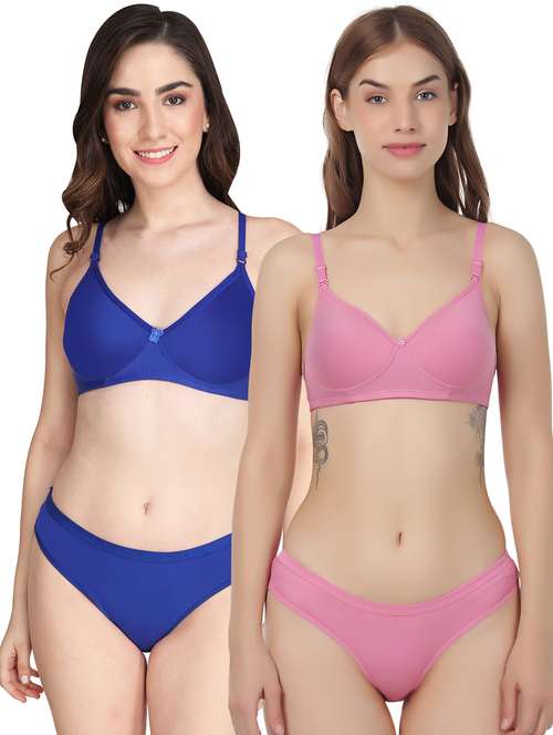 Liigne Women Everyday Non Padded Bra Panty Set (Pack Of 2) - This Lingerie Set Made of Pure Cotton