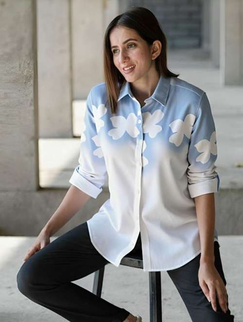 women floral print long sleeve collared shirt - 22081140 - Very Small Image - 1