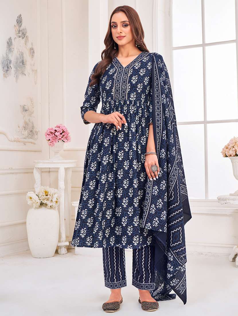 - Find gorgeous sets of ethnic wears in trending designs in blue colors suitable for casual wear of occasions.