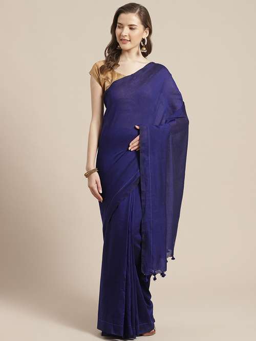 solid navy handloom saree with blouse - 17461970 - Very Small Image - 1