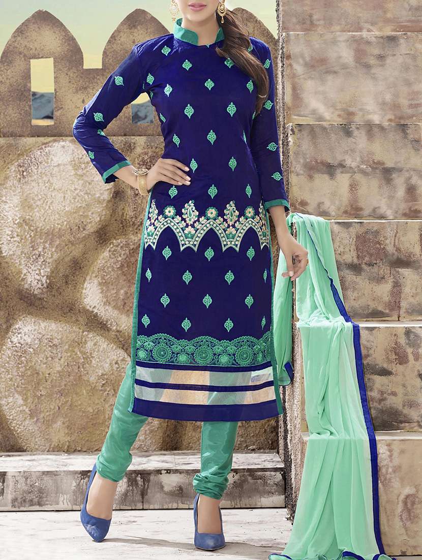 blue cotton blend semistitched suit