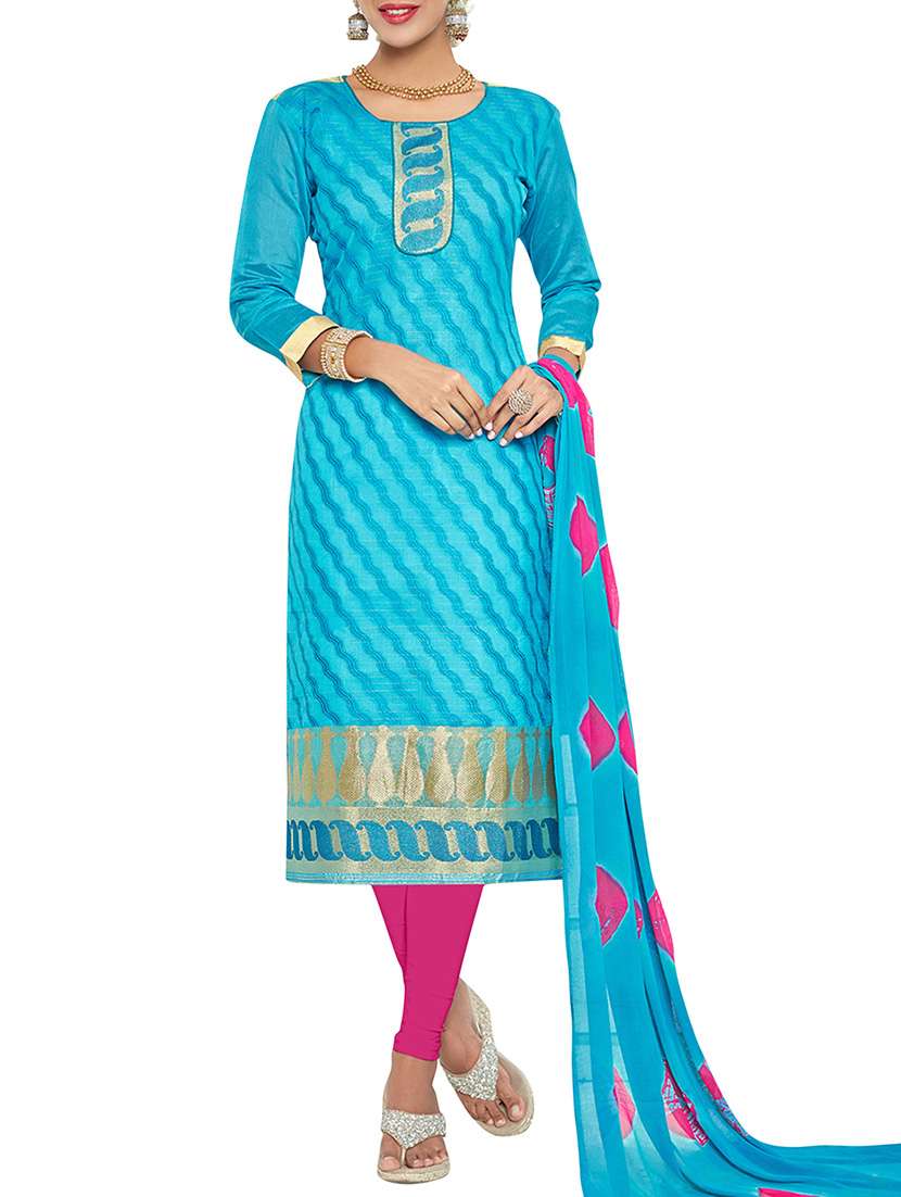 - » blue cotton blend semistitched suit