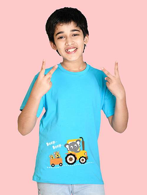 turquoise blue cotton blend t-shirt