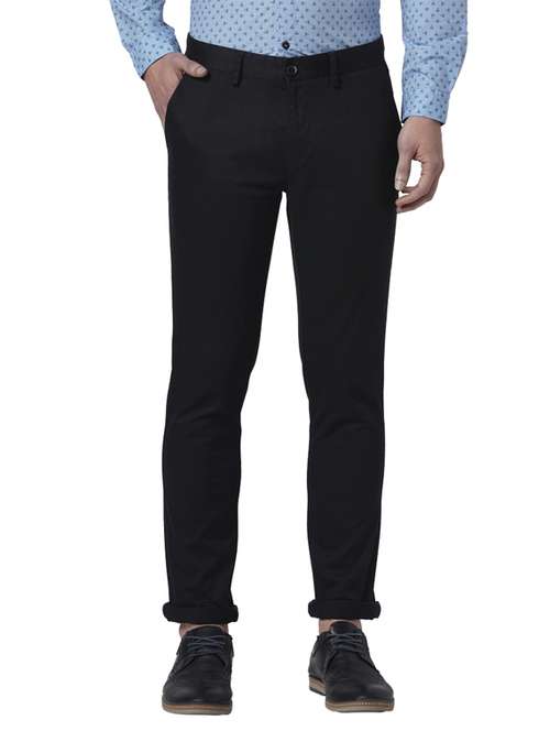 - » dark blue solid flat front casual trouser