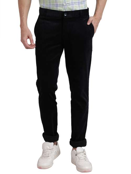 blue solid flat front casual trouser - 17766237 - Very Small Image - 1