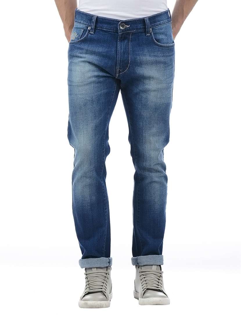 blue cotton blend washed jeans