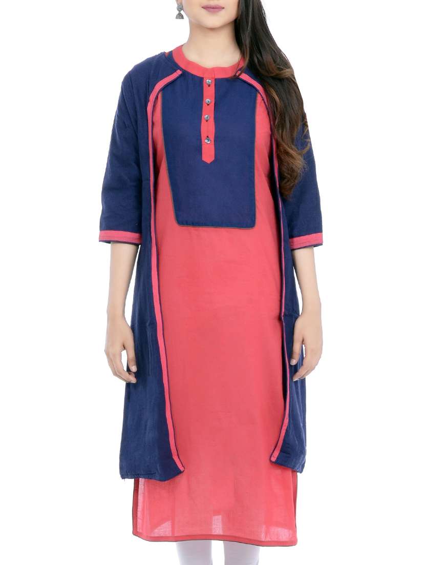 blue & pink cotton blend straight kurti