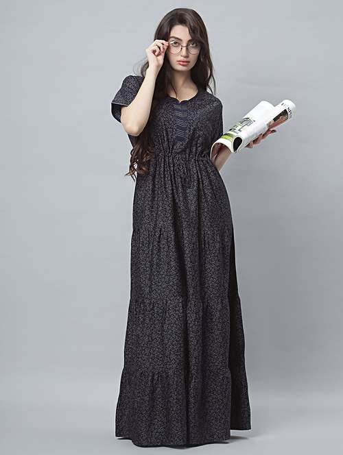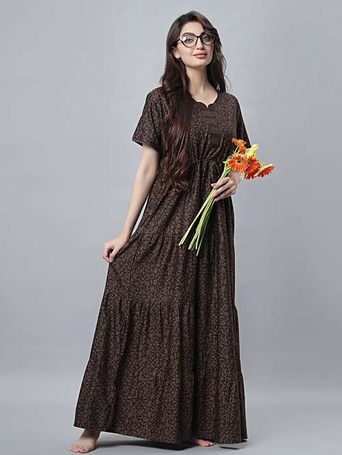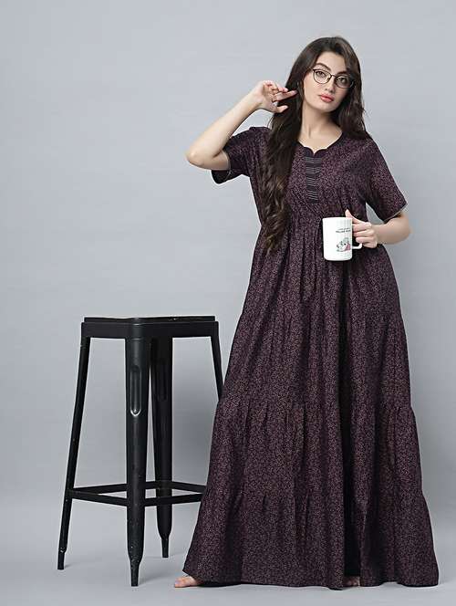 Quira Comfortable Women's Full Length Cotton Blend Half Sleeves Nighty, Soft and Elegant Print