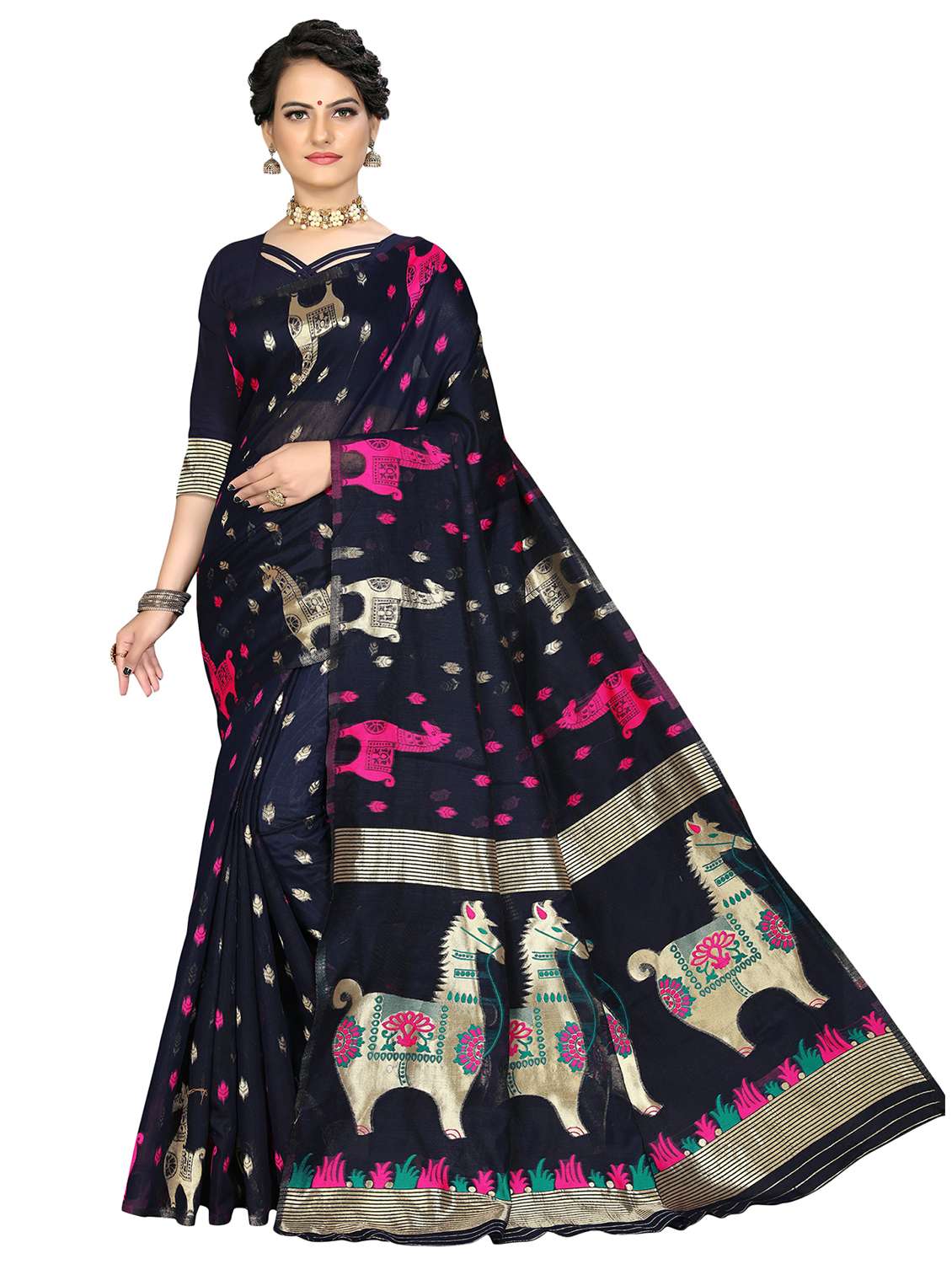 women's self design navy blue colored saree - 20536793 - Very Small Image - 1